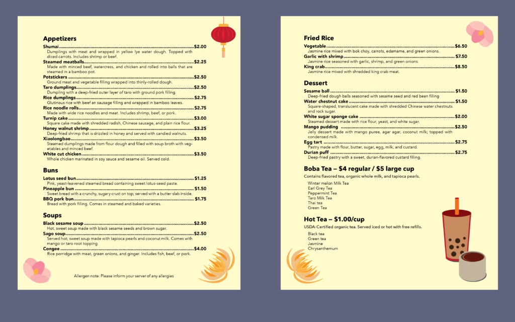 Print Restaurant Menu – Dim Zone Amy Liu October 14, 2021 2021 Print menu design for a modern-day dim sum restaurant. Menu Design Full Menu Design Restaurant Logo Design