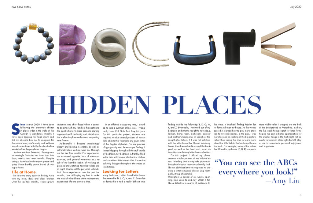 Editorial spread design about finding inspiration in the little things in life. Includes a supplementary poster of the English alphabet as depicted by household objects.